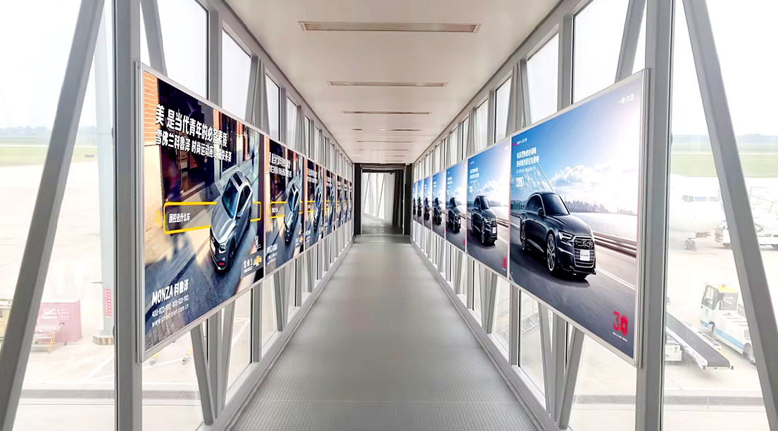 机场廊桥广告不同于其他平面媒体或数字媒体,它是一个真正的立体空间展示,360度全方位近距离展示产品,是很多汽车品牌优选广告形式。廊桥媒体可与区域乘客密切接触,也可安排现场人员与咨询客户互动,适合各类企业产品推广。