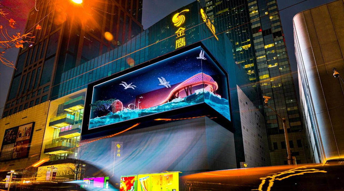 裸眼3D屏幕带来震撼的视觉效果,与传统的平面广告相比,裸眼 3D 广告更直观、信息量更大,品牌投放裸眼 3D广告可成为城市独特的视觉名片,自带吸引流量的属性,成为城市打卡地标,再通过互联网进行二次传播,形成全民喜爱热议的广告形式。